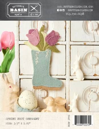 From Buttermilk Basin By West, Stacy In Craft Size: 3.5 X 5.25 inches. This little woolen boot ornament is adorned with sweet tulips and can be kept out through both spring & summer.
