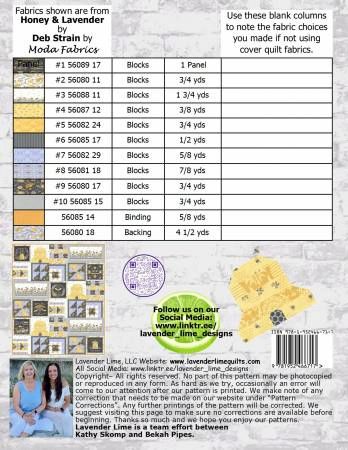 From Lavender Lime Quilting In Quilting - General Use a panel or a beautiful focus fabric to make this fun bee inspired quilt sampler. Fabric shown on cover quilt is Honey & Lavender by Deb Strain by Moda Fabrics. Softcover