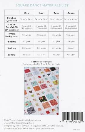 From Gigi's Thimble By Johnson, Amber In Quilts Little squares sashay around big squares in this fun, yet simple design. Square Dance is perfect for using up small scraps from your stash or charm packs. Finished size approx. 38in x 54in