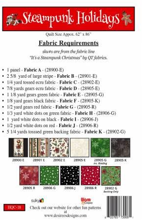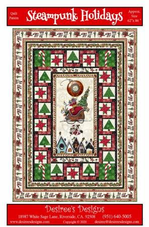 From Desiree's Designs By Habicht, Desiree In Quilts Steampunk Holidays is our newest pattern for our latest Steampunk Fabric line, It's a Steampunk Christmas. Using our panel and coordinates you can create this wonderful, whimsical Steampunk Quilt for the holidays. The quilt has candy canes, stars and trees which add to the festive look of the quilt. There is also a companion Embroidery CD that offers the same characters as our fabric line. The Quilt is approx 62"x 86" Printed Paper Pattern Finished Size: 62in x 86in Final Product: Quilt Technique Used: Foundation Paper Piecing Skill Level: Confident Beg