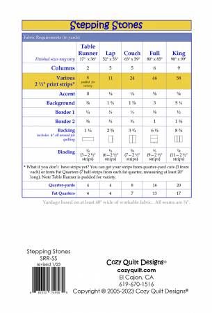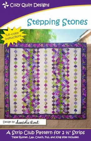 From Cozy Quilt Designs By Stout, Daniela In Quilts A Cozy Strip Club pattern designed for 2½" strips, revised and updated Jan 2023. This fabulous vertical quilt looks complicated, but with Seminole strip-piecing, it's not! Use soft romantic colors for a quilt that looks immediately like an old favorite, jazz it up with 30 prints, or create a classic masterpiece with warm brown country colors. This pattern includes full-color instructions for the following sizes: Table Runner, Lap, Couch, Full, King. Printed Paper Pattern Finished Size: Multiple Final Product: Quilt Technique Used: Standard Machine Sewing Skill Level: Confident Beginner