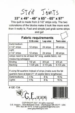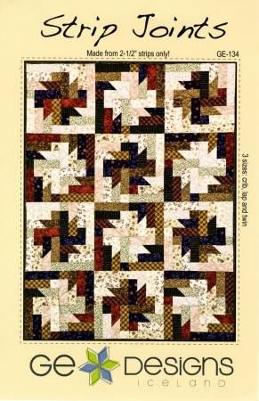 From G. E. Designs By Erla, Gudrun In Quilts A great large block quilt using 2-1/2" strips only. Alternate the light background blocks with the dark background blocks for this great look. The instructions include three different sizes, Crib Size, Lap size and Full size.