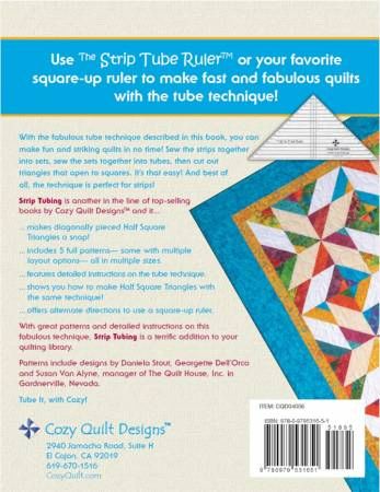 From Cozy Quilt Designs By Stout, Daniela and Dell'Orco, Georgette In Quilting - General With the fabulous tube technique described in this book, you can make fun and striking quilts in no time! Sew the strips together into sets, sew the sets together into tubes, then cut out triangles that open to squares. It's that easy! And best of all, the technique is perfect for strips! Strip Tubing is another in the line of top-selling books by Cozy Quilt Designs and it makes diagonally pieced Half Square Triangles a snap! Includes 5 full patterns - some with multiple layout options - all in multiple sizes. Features detailed instructions on the tube technique. Shows you how to make Half Square Triangles with the same technique! Offers alternate directions to use a square-up ruler. With great patterns and detailed instructions on this fabulous technique, Strip Tubing is a terrific addition to your quilting library. Pages: 24 Author: Daniela Stout and Georgette Dell'Orco Publish Date: 2008 Softcover
