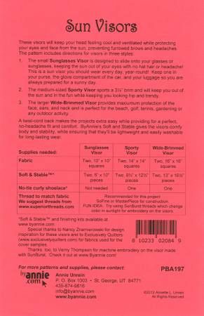 Will keep your head feeling cool and ventilated while protecting your eyes and face from sun. Directions for 3 styles. Small one is designed to slide onto you glasses or sunglasses, medium is a sporty visor and the large wide brimmed is perfect for beach, tennis, gardening and more.