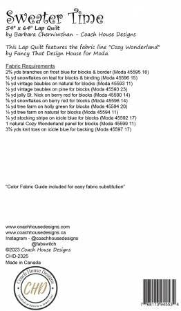 From Coach House Designs By Cherniwchan, Barbara In Quilts This 54" x 64" Christmas lap quilt features the Cozy Wonderland Panel by Fancy That Design House. Such cute retro images and colors, with pieced trees, ornaments, winter caps and an ugly sweater! Printed Paper Pattern Finished Size: 54in x 64in Final Product: Quilt Technique Used: Standard Machine Sewing Skill Level: Confident Beginner