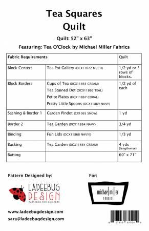 From Ladeebug Designs In Quilts Features Michael Miller's Tea O'Clock collection. Finished size: 46" x 57". Confident Beginner - precise cutting. The asymmetrical blocks showcase fussy-cut squares from the block panel. A simple sashing and border make this a quick quilt.