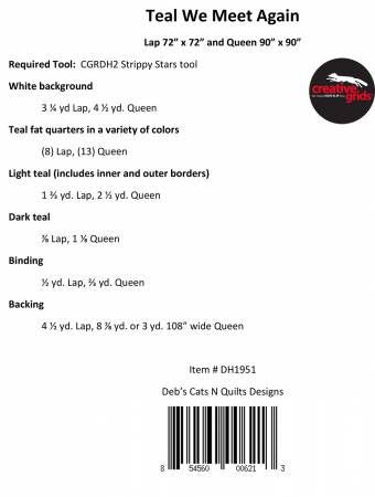 From Deb's Cats N Quilts By Heatherly, Deb In Quilts Pattern includes lap and queen size. Construction is easy using the Creative Grids Strippy Stars tool. Other suggested tools: Creative Grids Folded Corner Clipper and, the CGR4 or Stripology mini for squaring.