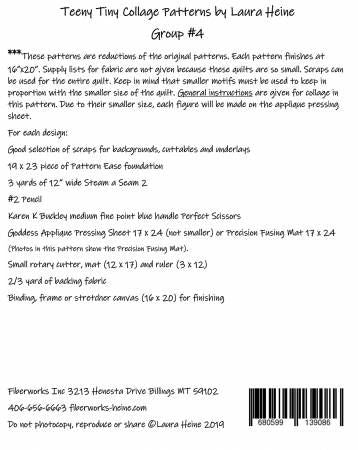 From Fiberworks Inc By Heine, Laura In Quilts Teeny Tiny Collage Pattern Group 4 by Laura Heine includes Sea Turtle, Mermaid and Octopus. Finished size of each image is 16in x 20in.