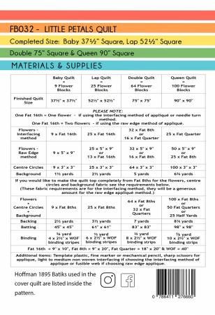 From Free Bird Quilting Designs By Murfitt, Carolyn In Quilts Introducing the enchanting “Little Petals Quilt” – a delightful creation that effortlessly marries charm with functionality. This quilt is designed for those who appreciate the beauty of repetition and the joy of crafting something truly special. This pattern is perfect for all types of appliqué methods, machine, raw edge and needle turn. This pattern has the instructions for all three including the quick modern ‘faux’ appliqué method using interfacing to secure the appliqué pieces and then sewn into place by machine. This quilt is a perfect opportunity to make use of cherished fabric scraps. Let your favorite fabrics, whether they’re vibrant batiks or soothing solids, find a harmonious place in this quilt, creating a mosaic of color and texture that tells a unique story. Enjoy the freedom to create in four distinct quilt sizes: See above and refer to the provided cutting chart for precise measurements, ensuring accurate and beautiful results every time. Sewing the appliqué onto the smaller background blocks before piecing is game-changing, it adds a layer of ease and precision making the task of sewing down flowers a breeze. Elevate the artistry of your quilt with the versatility of background fabric selection. The “Little Petals Quilt” embraces your creativity by allowing you to choose between a single fabric or a captivating array of different fabrics for the background. This choice adds another layer of depth and charm to your quilt. Printed Paper Pattern Finished Size: 37½” x 37½”, 52½” x 52½”, 75¿ x 75¿, 90¿ x 90¿ Final Product: Quilt Paper Templates Included - Acrylic Template Sold Separately Technique Used: Applique