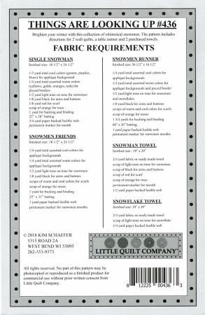 From Little Quilt Company In Quilts Brighten your winter with this collection of whimsical snowmen. The pattern incldues directions for 2 wall quilts, a table runner and 2 purchased towels.