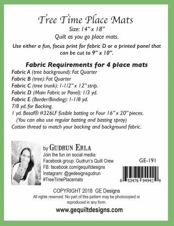 From G. E. Designs By Erla, Gudrun In Placemats, Table Runners & Toppers Use a printed panel or a fun focus print to make these easy, quilt as you go place mats.
