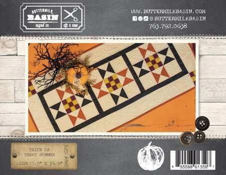 From Buttermilk Basin In Placemats, Table Runners & Toppers This is a simple, yet fun table runner that can be done in an array of colors if our Halloween version is not for you! Why not make it in colors for each of the 4 seasons! Perfect for shows & easy to kit! Size: 11-1/2in x 34-1/2in.