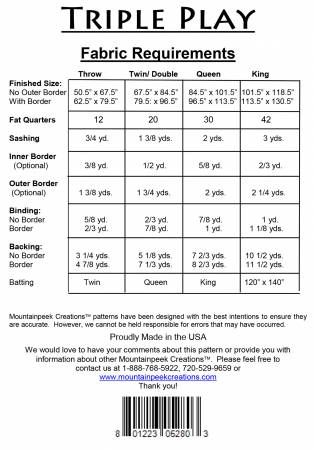 From Mountainpeek Creations By Nichols, Kari In Quilts A simple Fat Quarter quilt sized from Throw - King. Enjoy with or without borders.