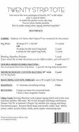 Great to make with the new twenty 2-1/2in strip packs Easy to make with batting filled tubes! 12” wide x 12” tall x 4” perfect every day size Uses Bosal’s Duet Fuse II and/or medium weight cotton batting Enhanced with QR codes which link directly to instructional videos