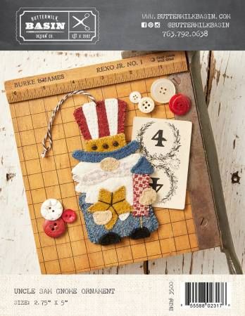 Size: 2.75 X 5 inches. This little gnome is all dressed up for the 4th of July! He is one of many "gnome" themed projects we offer in wool.