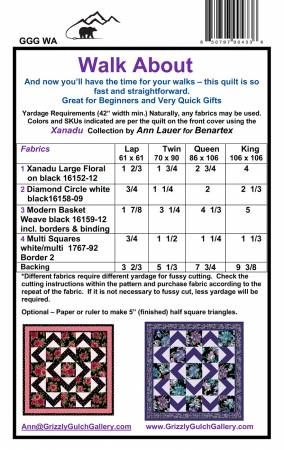 From Grizzly Gulch Gallery By Lauer, Ann In Quilts Unusual, Quick and Very Easy. Time to go for a stroll in your own private garden. Highlight your favorite large print fabric. Great for beginners. Instructions for: Lap 61in x 61in Twin 70in x 90in Queen 86in x106in King 106in x 106in Uses Here Comes the Sun Fabric Collection from Benartex