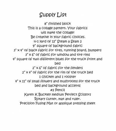 From Fiberworks Inc By Heine, Laura In Quilts Whatevers! #37 Flower Truck Collage Pattern by Laura Heine. Whatevers are 8in collage blocks that you can turn into runners, potholders, tiny quilts or continue making the designs for a large collage quilt! Includes pattern with complete color photo and instructions to complete the block. You can do whatever you want with the finished block! New pattern designs will be released whenever! Printed Paper Pattern Final Product: Placemat, Table Runner or Table Topper Finished Size: 8in x 8in Technique: Standard Machine Sewing Skill Level: Beginner