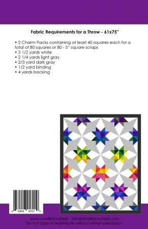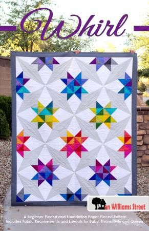 From On Williams Street In Quilts Whirl is a beginner modern quilt pattern using simple half square triangle blocks and an easy foundation paper piece block to create a fun colorful statement. Layouts for a baby quilt (about 40x60"), a throw quilt (about 50x72"), a twin size bed quilt (about 75x89") and a queen size bed quilt (about 90x111") are included.