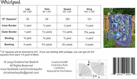 Make this fun quilt with 10" squares and the Creative Grids Circle Savvy Ruler! Multiple sizes included: 60" x 68" Lap, 60" x 84" Twin, 92" x 92" Queen, and 100" x 100" King.