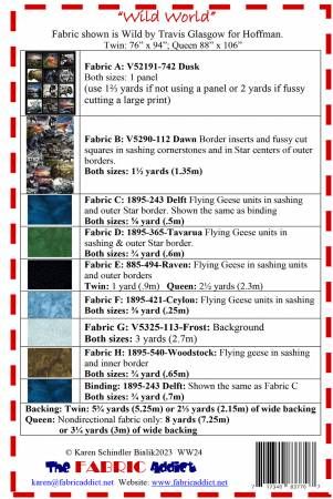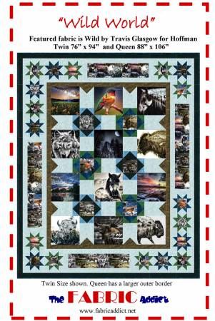 From Fabric Addict By Schindler, Karen In Quilts Wild World quilt pattern. Twin, Queen sizes. Features Wild by Travis Glasgow for Hoffman. easy to piece. Printed Paper Pattern Finished Size: 76in x 94in & 88in x 106in Final Product: Quilt Technique Used: Standard Machine Sewing Skill Level: Confient Beginner