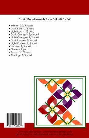 From On Williams Street In Quilts Windswept is a modern intermediate quilt pattern using various sizes of drunkards path blocks to create large flowers flowing across the quilt. Layouts for a throw quilt (about 59x59"), twin/full sized bed quilt (about 84x84") and a queen/king size bed quilt (about 109x109") are included.