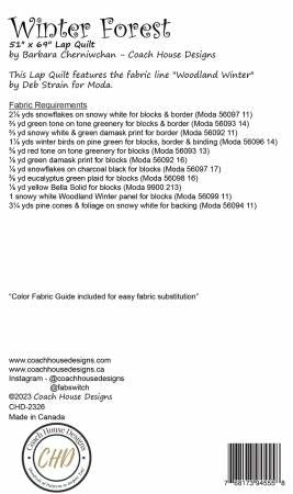 From Coach House Designs By Cherniwchan, Barbara In Quilts 51" x 69" lap quilt features the snowy white panel from Deb Strain's Woodland Winter. The panel blocks are surrounded by holly, trees and pieced cardinals. Elegant winter quilt. Printed Paper Pattern Finished Size: 51in x 69in Final Product: Quilt Technique Used: Standard Machine Sewing Skill Level: Confident Beginner