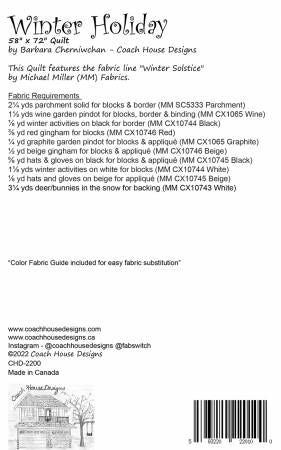 This 58" x 72" lap quilt evokes a winter holiday in north with trees, stars, deer and sleds. It features the beautiful Winter Solstice fabric by Michael Miller Fabrics. Mostly pieced with some larger applique. Printed Paper Pattern Finished Size: 58in x 72in Final Product: Quilt Technique Used: Applique Skill Level: Intermediate