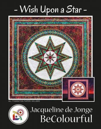 From Becolourful By Jacqueline De Jonge By Jonge, Jacqueline De In Quilts Jacqueline always wanted to make a Feathered Star once and here she is: "Wish Upon a Star". The basis for those colors is in the beautiful background fabric. All the colors chosen in this quilt come back in this lovely fabric. The spectacular flying geese circle is breathtakingly beautiful and give a special effect to this design. Printed Paper Pattern Final Product: Quilt Finished Size: 63in x 63in Technique: Applique, Foundation Paper Piecing, Standard Machine Sewing Templates included: Yes - Paper Templates Skill Level: Advanced