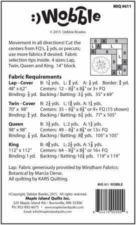 From Maple Island Quilts By Bowles, Debbie In Quilts Cut centers from FQ's 1/4 yds or precuts; use more fabrics if desired. 4 sizes:Lap 48in x 62in, Twin70in x 98in, Queen 98in x 98in and King 114in x 114in. 14in block.