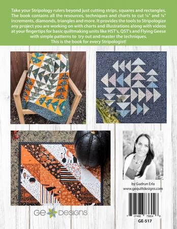 From G. E. Designs By Erla, Gudrun In Quilting - General This is the book for every Stripology® ruler user. Take your Stripology® rulers beyond just cutting strips, squares and rectangles. The book contains all the resources, techniques, and charts to cut strips, diamonds, triangles and more in 1/4in and 1/8in increments. The book shows you great time saving techniques to make half square triangles, quarter square triangles and flying geese. Some simple patterns to try the techniques are also included. The book provides the tools to Stripologize any project you are working on with charts and illustrations along with videos at your fingertips. Scanning the QR codes featured all throughout the book will take you to videos demonstrating that particular technique. The book is spiral bound so it lies flat for easy reference. Pages: 28 Publish Date: July 15, 2023 Softcover Dimensions: 9in x 11in