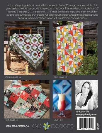From G. E. Designs By Erla, Gudrun In Quilting - General Put your Stripology Rulers to work with this sequel to the first Mixology book. You will find 13 great quilts in multiple sizes, made from Precuts. That includes quilts made from 10in squares, 5in squares, 2-1/2in strips and 1-1/2in strips. Be inspired to put your stash to work by curating and cutting your own precuts. Full color instructions for using all three Stripology rulers or regular rulers are included in the 84 page book, along with 13 delicious cocktail recipes. Pages: 84 Author: Gudrun Erla Publish Date: 12/23/2020 Dimensions: 12in x 9in x 1in Softcover